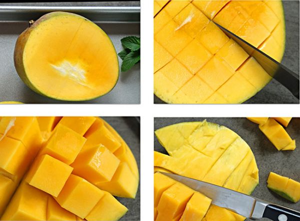 Đây là cách làm nhanh nhất và dễ dàng nhất để có được những miếng xoài đẹp mắt khi trộn salad.